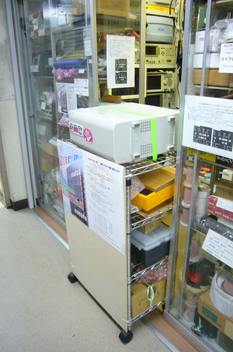 スチール・ラックが机代わりになっています。 ラックには、最低限の測定器を常備しています。