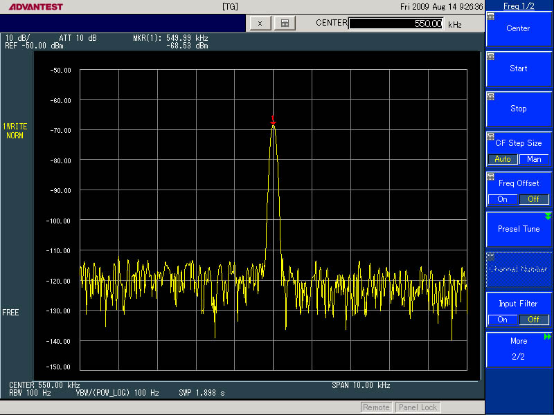 ◎ HP 8753D ネットワーク・アナライザーより550kHz /1.1MHz / 1.6MHzのCW信号を供給