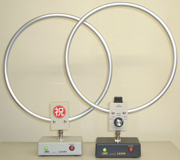AOR ●左:LA380 ●右:LA390 10kHz - 500MHz ループ・アンテナ 小型で、ノイズの少ない室内アンテナです。