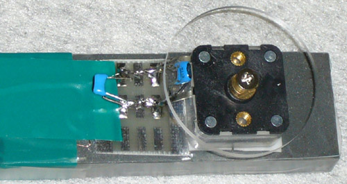同調用の固定コンデンサと微調整用のポリ・バリコンを並列に接続してあります。 下の画像で黒色ケースに入った方です。