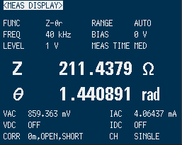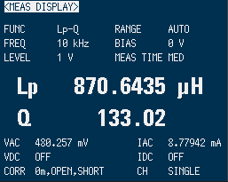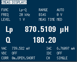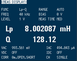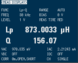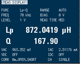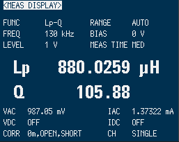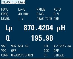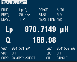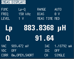 コイル・データ 9.283mH / Q = 168 / 40kHz時 9.367mH / Q = 193 / 60kHz時