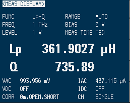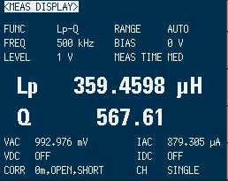 当店で試作したコイルは、下記のLCRメーターを使用して比較しています。