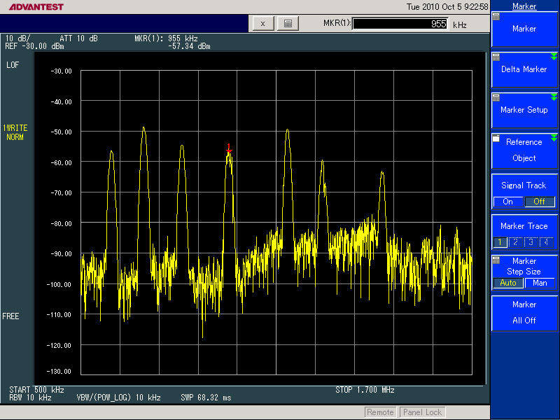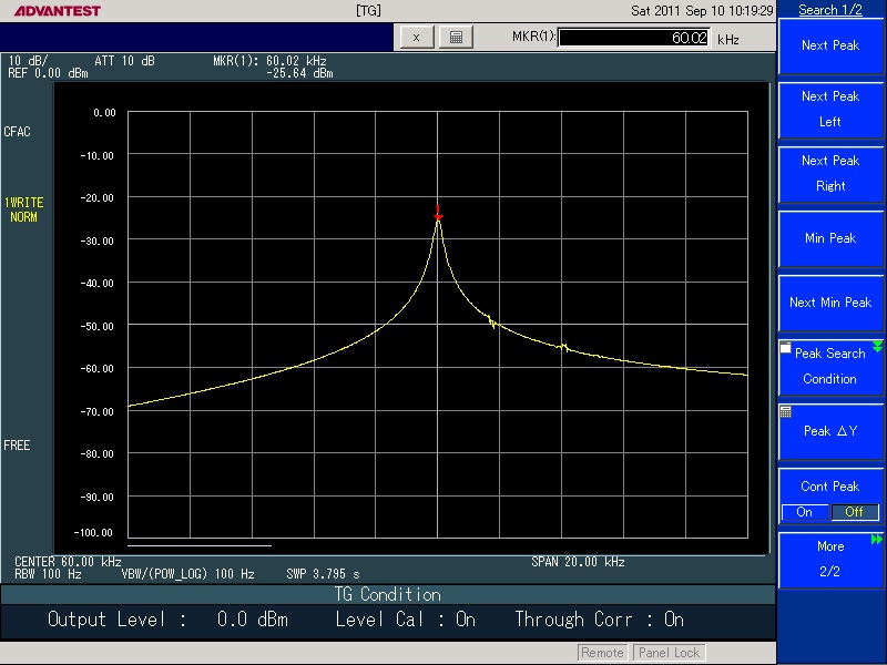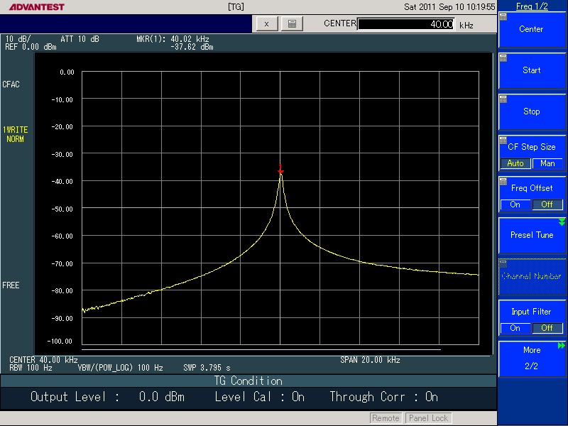 同様に、中心周波数40kHzで10kHz離調した30kHzで-48dB程度 50kHzで-33dB程度です。