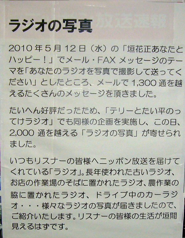 1Fロビーにリスナーから届いたラジオの写真が貼られています。 4Fにも貼られていました。