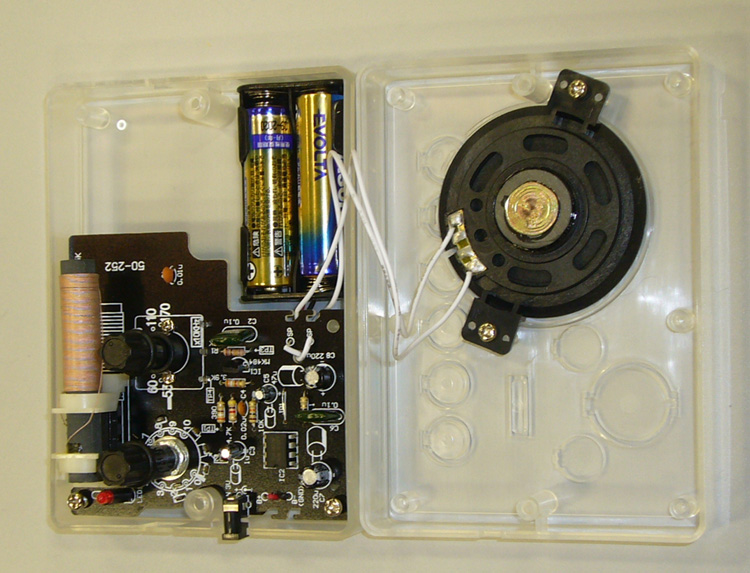 上部のフタを立てると、電源が入る仕組みです。 内部にループ・アンテナが内蔵されています。