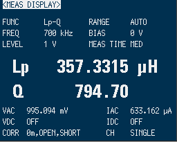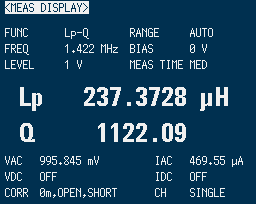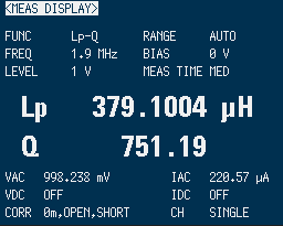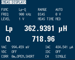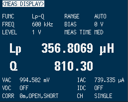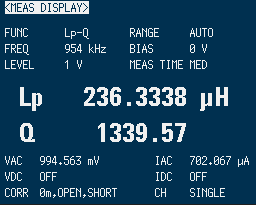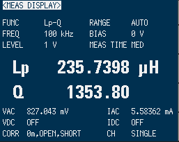 今度はインダクタンスはちょうど良い感じです。 端までコイルを巻いたので、Q値が低下しました。