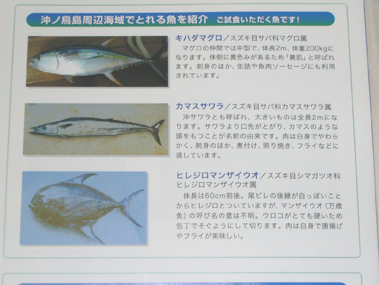 2時間半の短い時間でしたが沖ノ鳥島周辺で採れた魚の試食などがあり、興味深い内容でした。
